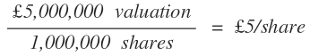 Divide your valuation (we’ll stay with £5M) by the total number of shares, 1M, to receive your current market value per share.