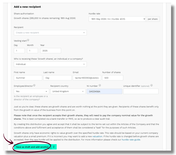4. Click Save as draft and add another to continue adding recipients.