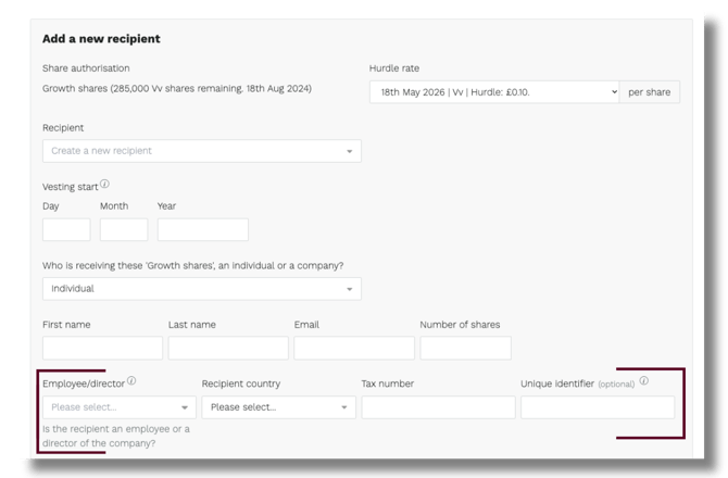 2. You can create new recipients or add existing ones already stored on Vestd (for example, if they've been added to other share schemes).