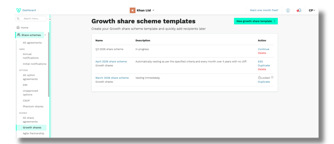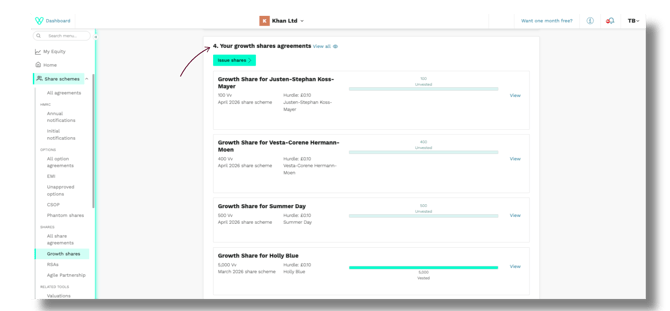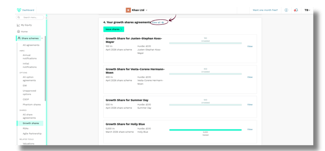 Head back to Share schemes > Growth shares at any time to view your live and draft growth share agreements.