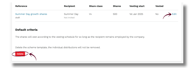 6. You can review all recipients at the bottom of the page and click Edit to make changes or remove anyone. To delete the entire scheme and all recipients, click the red Delete button at the bottom of the page.