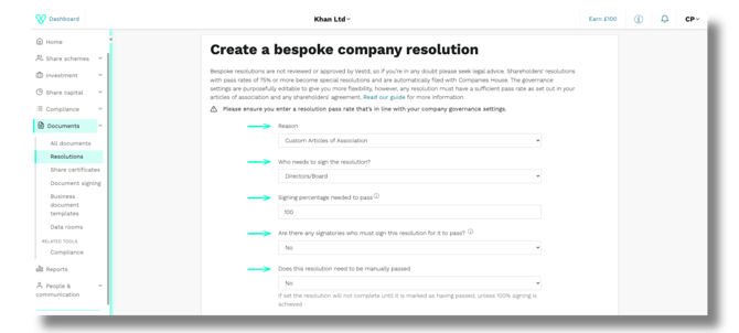 Use your own resolution wording via Vestd's bespoke resolutions