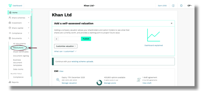 1. From your homepage, open the left-hand navigation and click Documents > Resolutions.